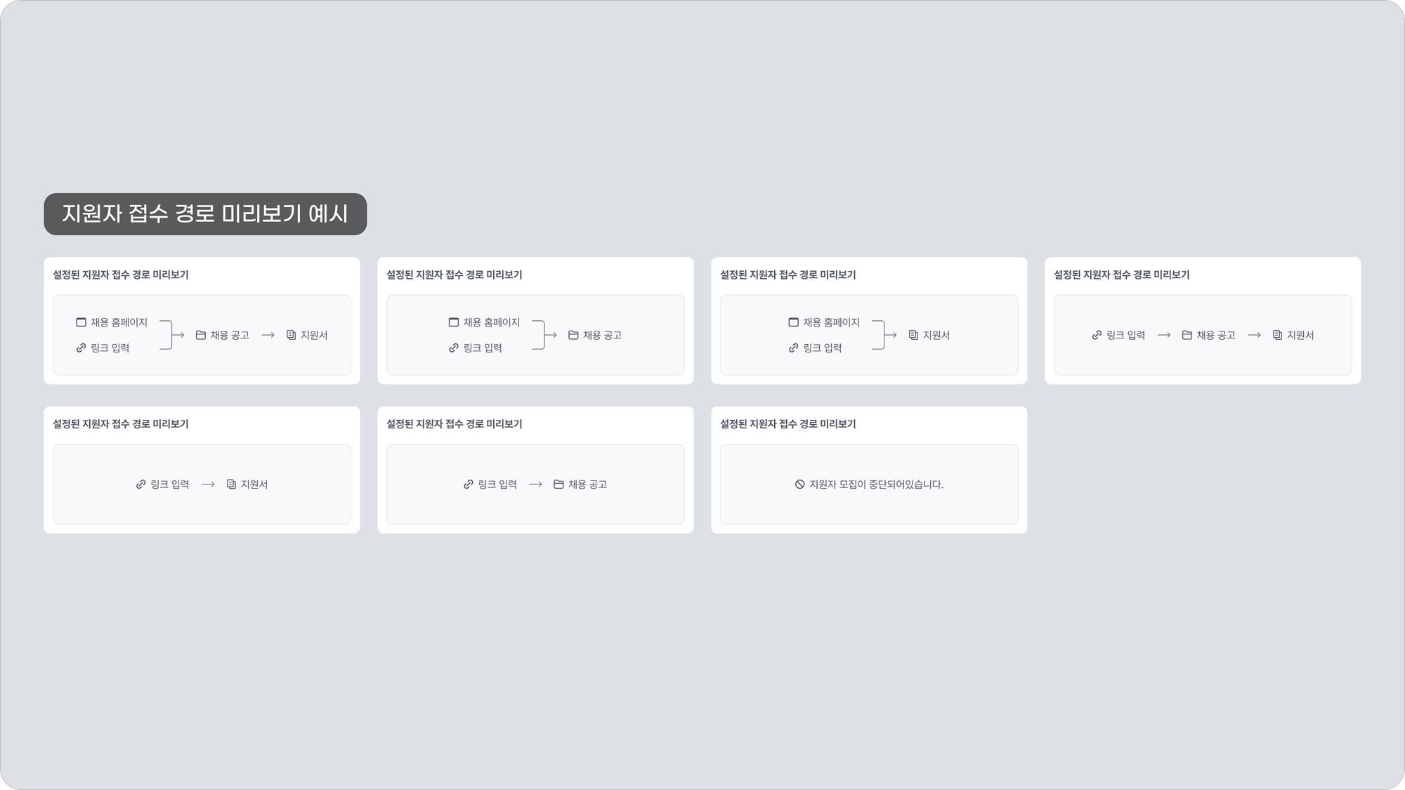 [모집 경로 미리보기]를 통해 현재 설정된 값들을 통해 결과적으로 지원자가 어떠한 경로로 지원하게 되는지 한눈에 볼 수 있는데요.