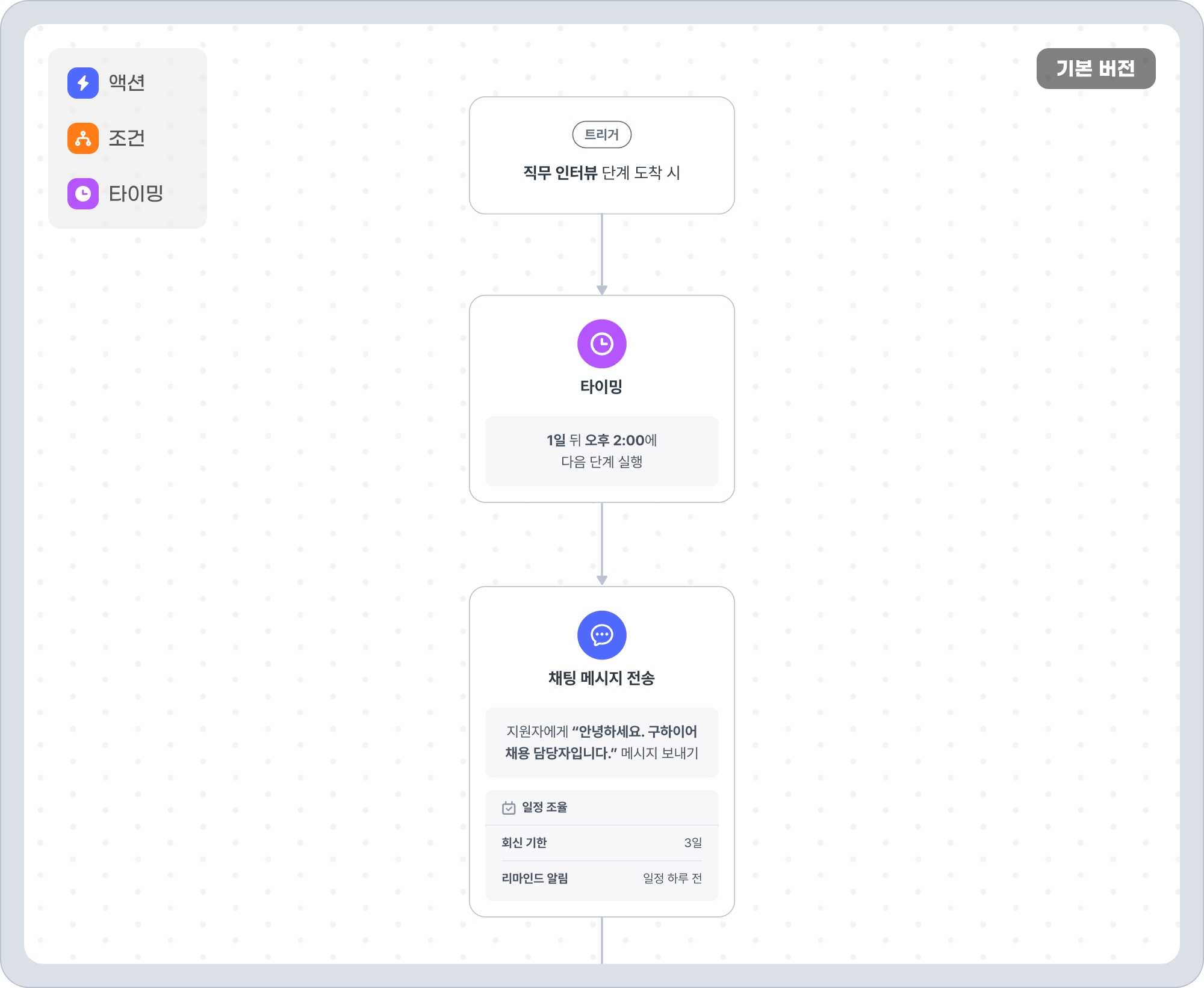 면접(인터뷰)을 진행해야 할 단계에 지원자가 도착하면 실행되는 플로우 구성입니다.