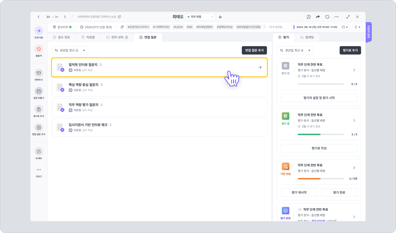 추가된 면접 질문은 면접 질문 탭에서 확인할 수 있습니다. 항목을 클릭하면 상세 질문 내용을 확인할 수 있습니다.