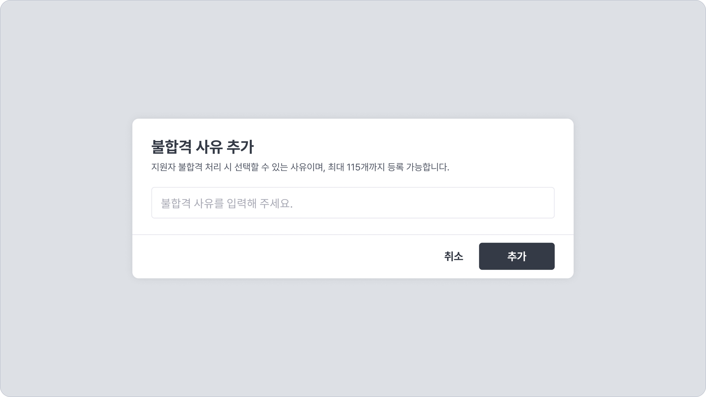 불합격 시 선택하는 불합격 사유 목록은 추가, 수정, 삭제가 가능합니다.
