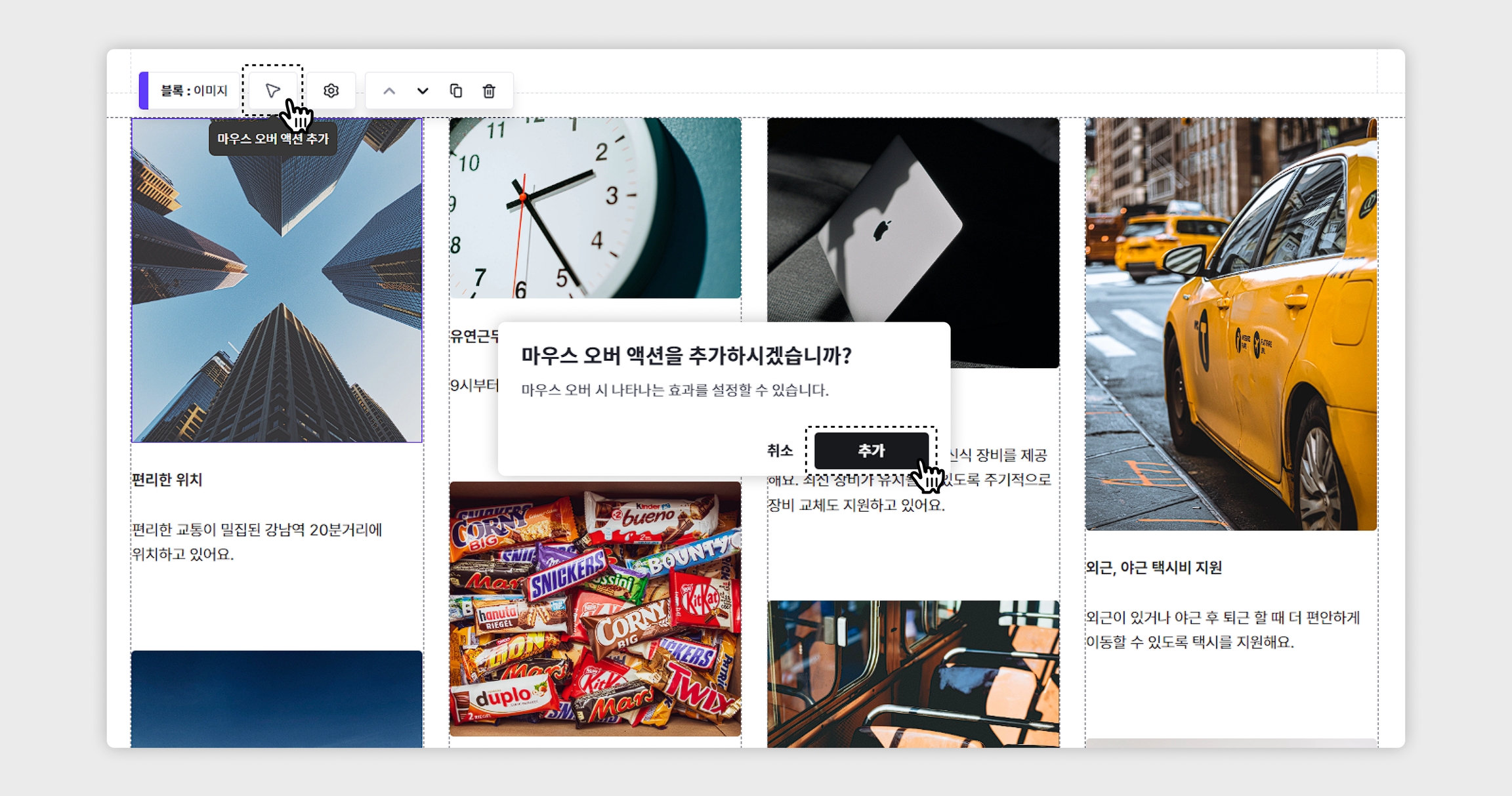 a. 이미지 블록 마우스 오버 기능 안내