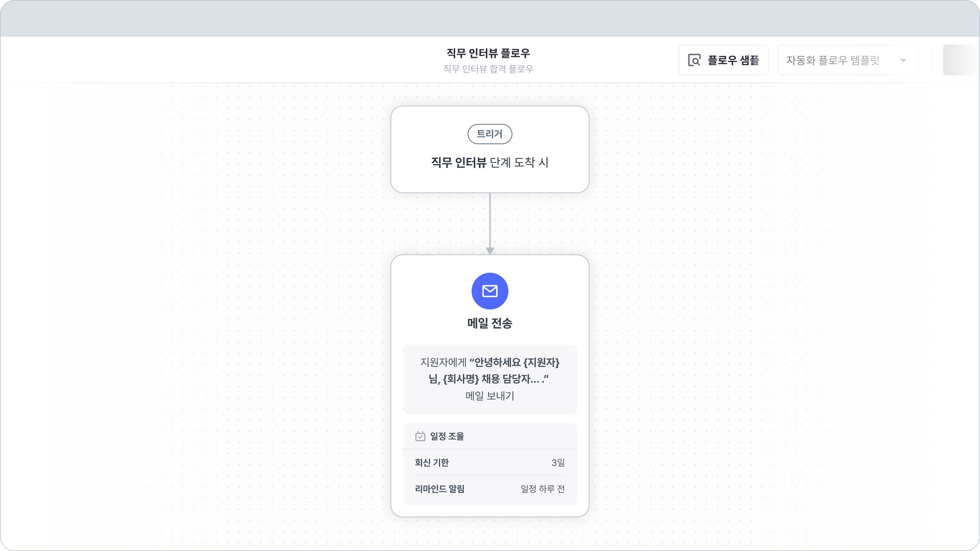 현재 자동화 플로우가 실행 중인 단계를 제외한 동일한 채용 내 단계로 이동시킬 수 있습니다.