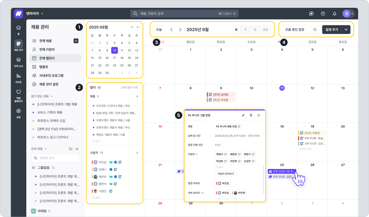 (1) 채용 필터: 필터 조건에 해당하는 채용의 일정을 표시합니다.