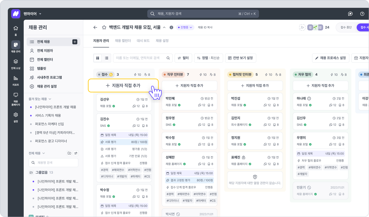 지원자 직접 추가 시에는 이름만 입력하면 지원자 추가가 가능합니다.