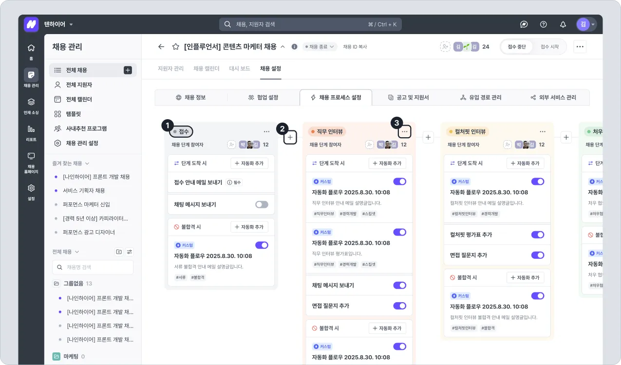 단계를 무조건 세분화할 필요는 없지만, 전략적으로 관리가 필요한 구간은 나누어 구성하면 채용 운영과 개선에 더 효과적으로 활용할 수 있습니다.