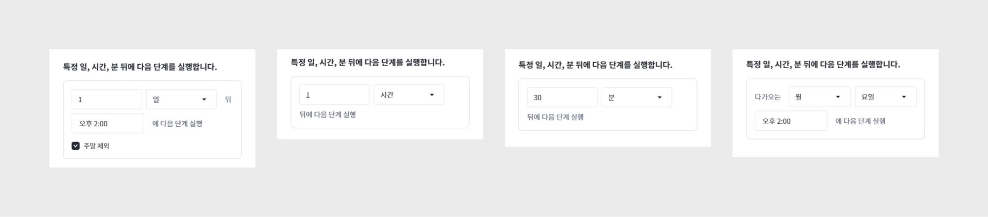 n일 뒤 [시간]에 다음 단계 실행 / 주말 제외 가능