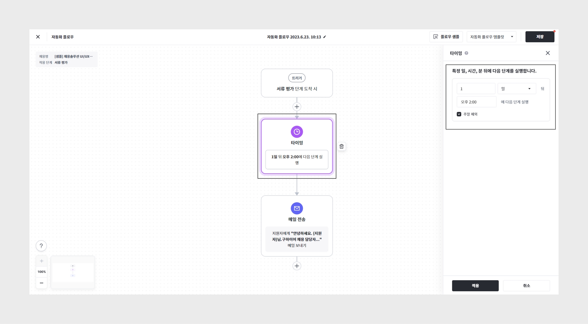 타이밍은 다음 플로우의 실행 시점을 정할 수 있는 카드입니다.