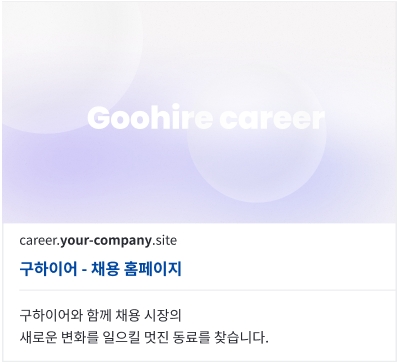 공고 링크를 공유할 때 표시되는 OG 이미지를 변경하고 싶다면, [채용 홈페이지 > 홈페이지 편집 > 메인 페이지(집 모양 아이콘) 설정 > SNS 설정]에서 이미지를 등록/변경해 주세요.