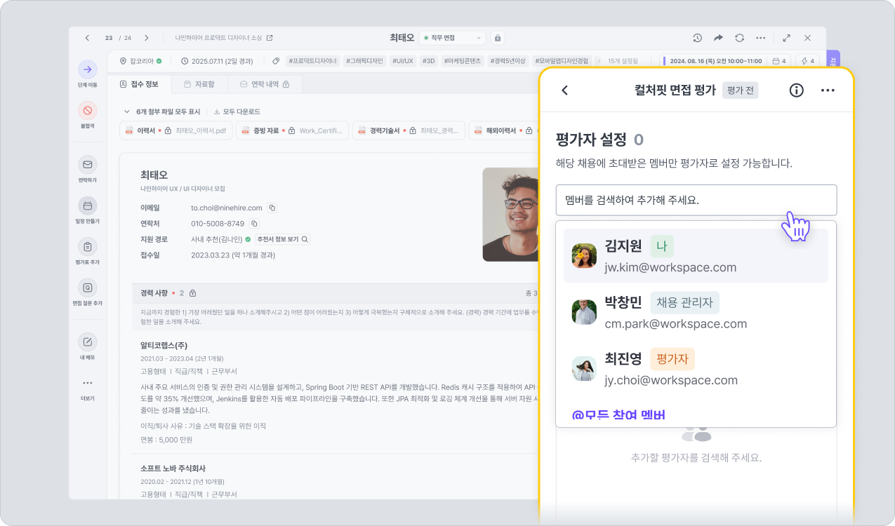 평가자를 선택합니다. < (뒤로가기) 를 누르면 평가는 시작되지 않으며, 평가자가 선택된 상태로 설정이 유지됩니다.