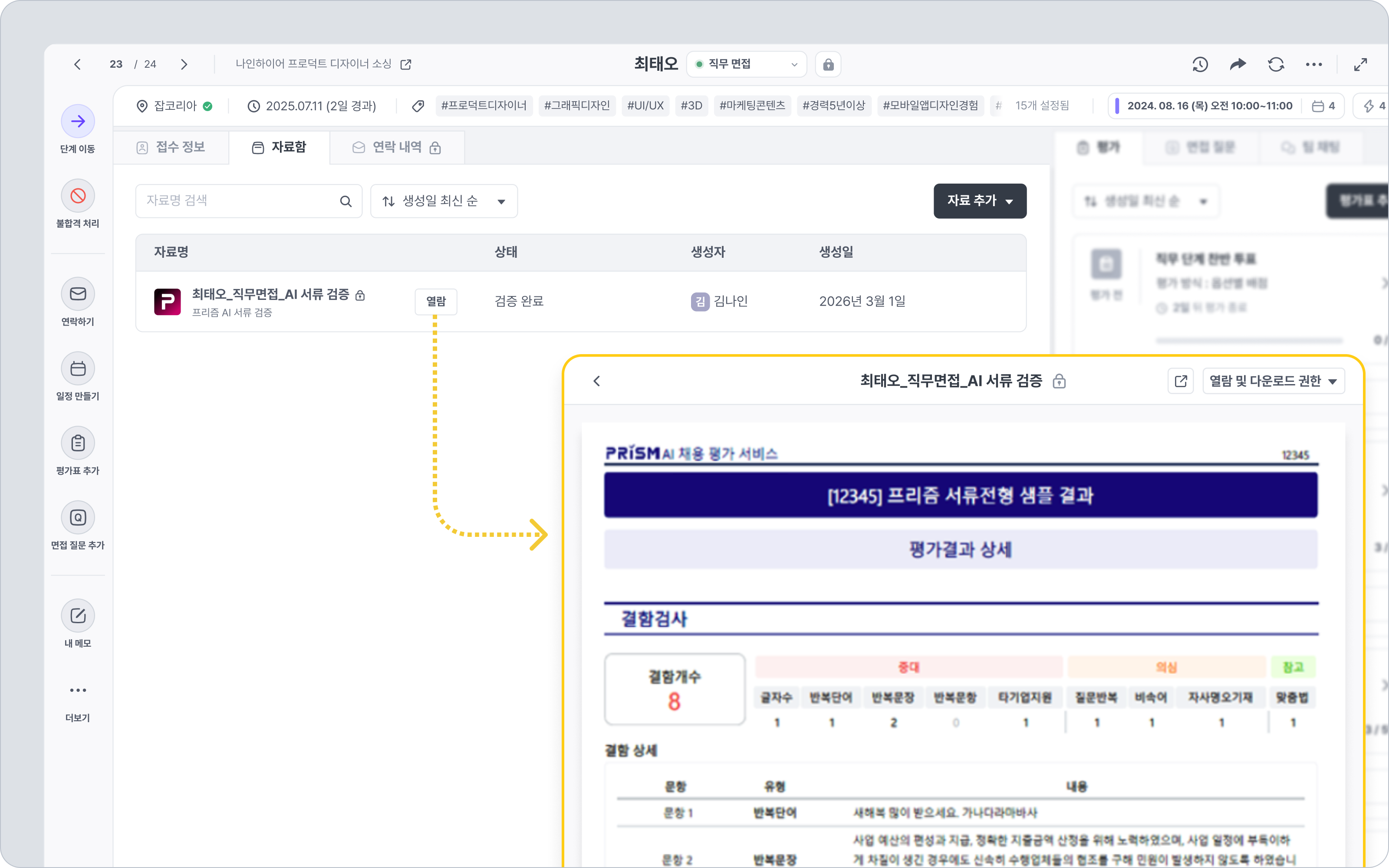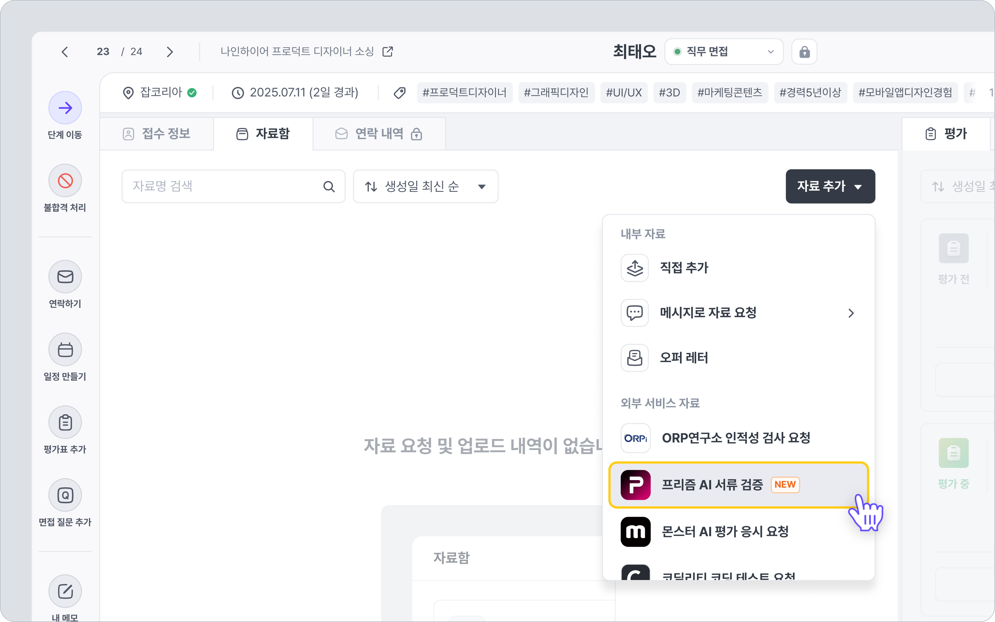 ◼ 경로2 : 지원자 상세 > 자료함 > 자료 추가 > 프리즘 AI 서류 검증