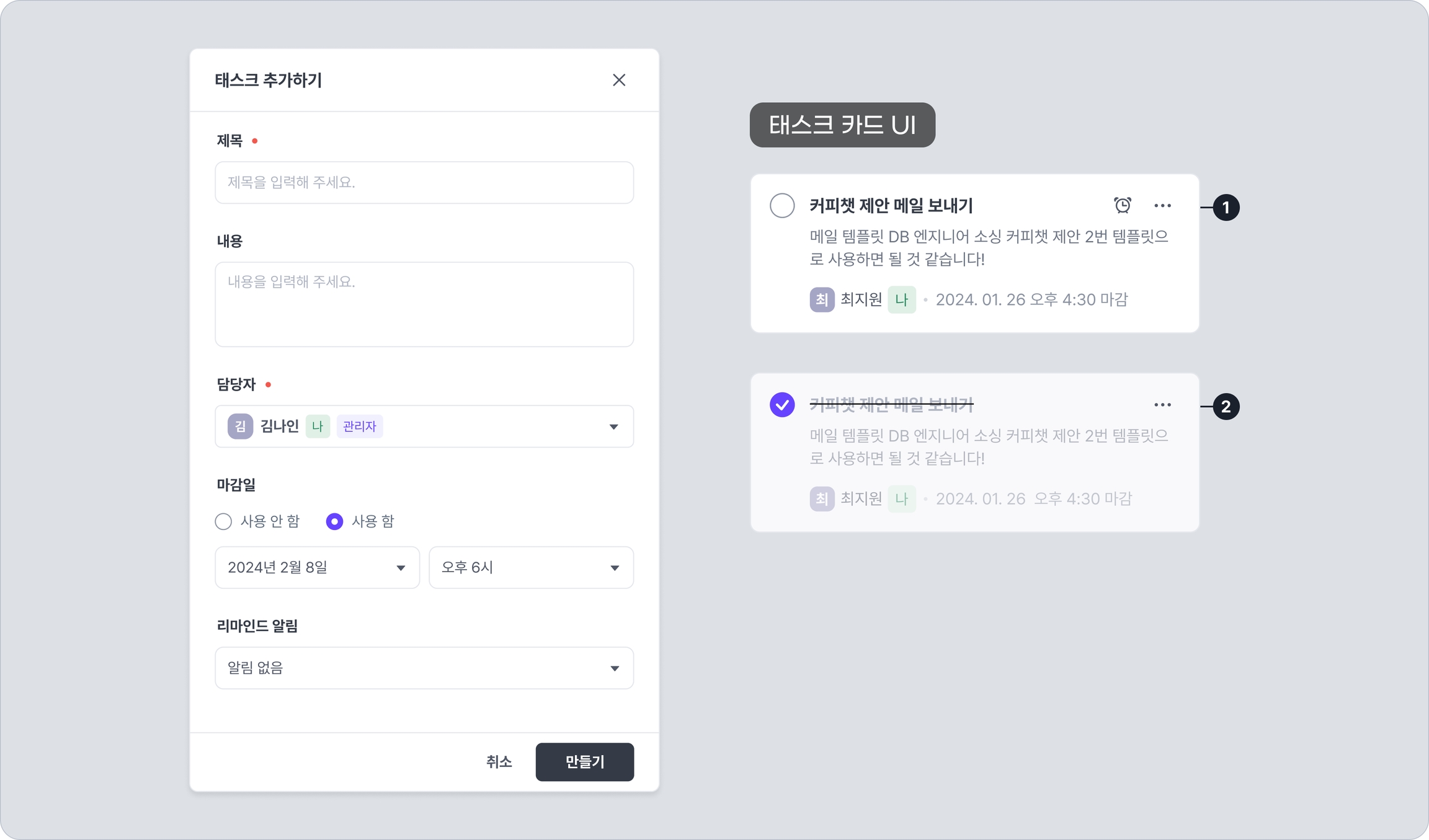 제목: 태스크의 제목을 입력합니다. (필수값)