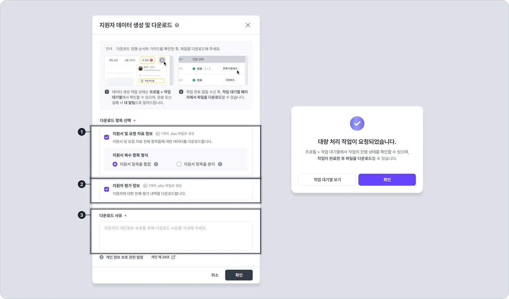 지원자 데이터 엑셀 다운로드 기능에 대한 설명은 지원자 데이터 엑셀 다운로드 사용 가이드를 참고해 주세요.