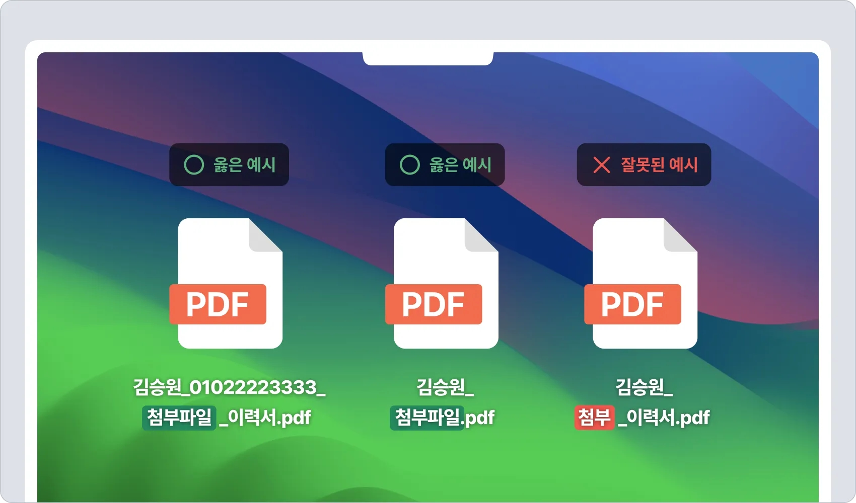 {지원자명}_{컬럼명}_{파일명} 또는 {지원자명}_{이메일 또는 연락처}_{컬럼명}_{파일명}으로 구성